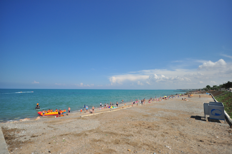 Широкая песчано-галечная береговая линия оставляет возможность разместиться большому количеству людей, а самые активные смогут воспользоваться прокатом: