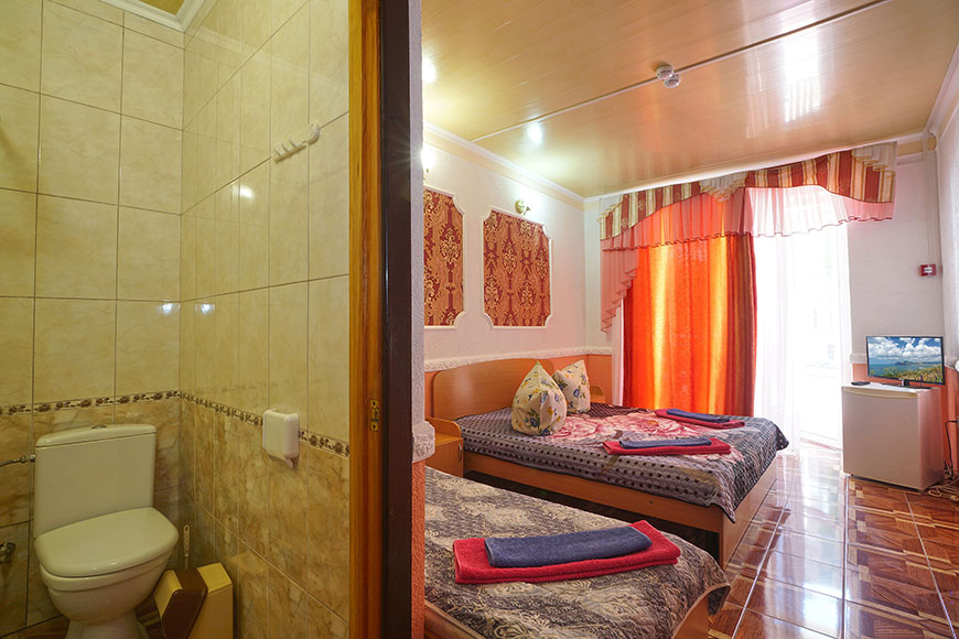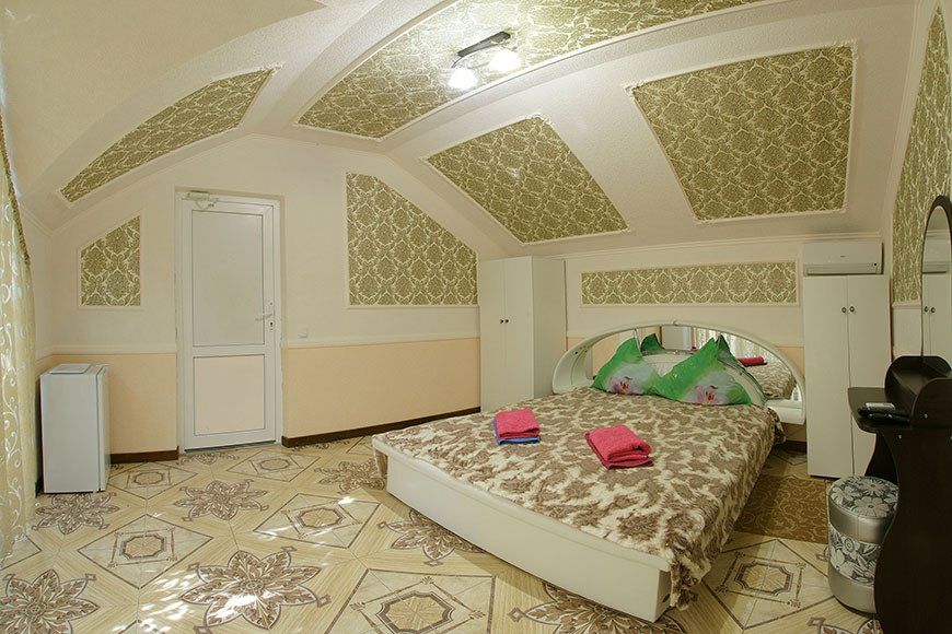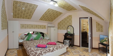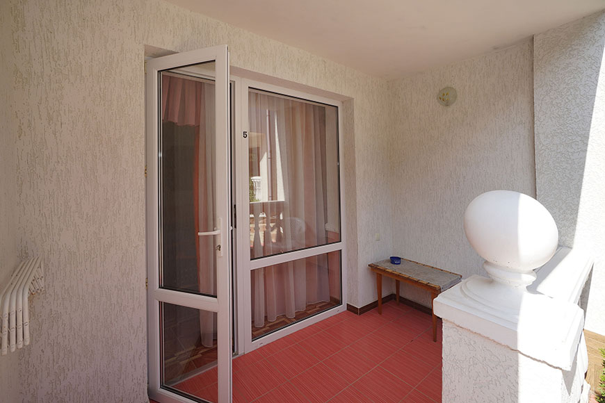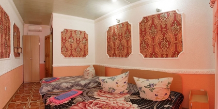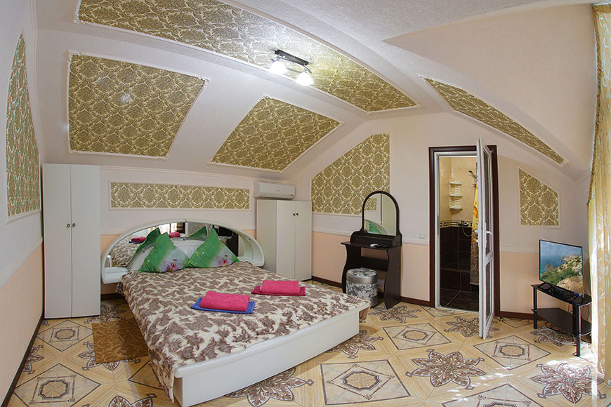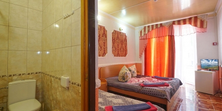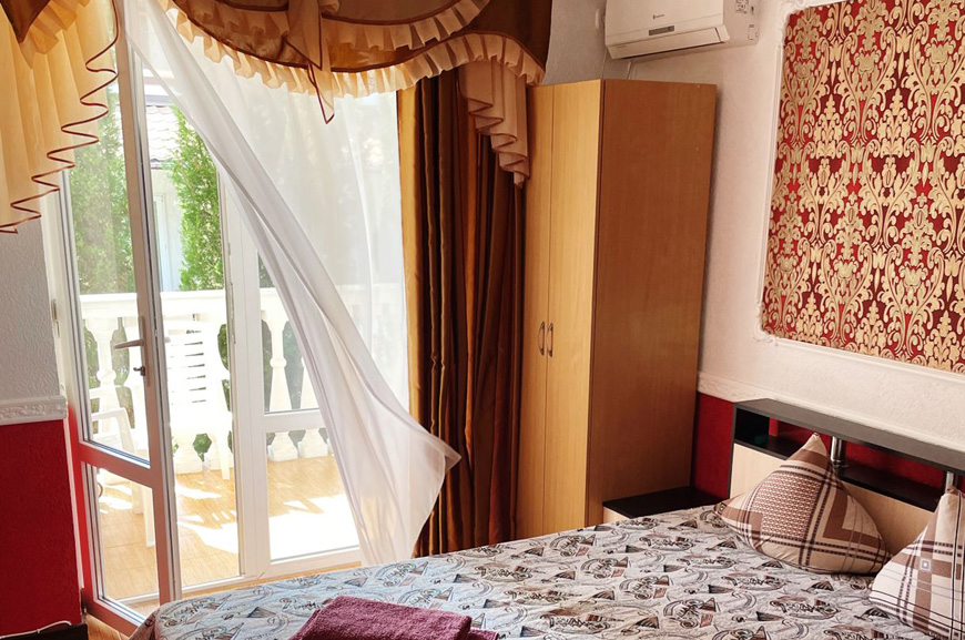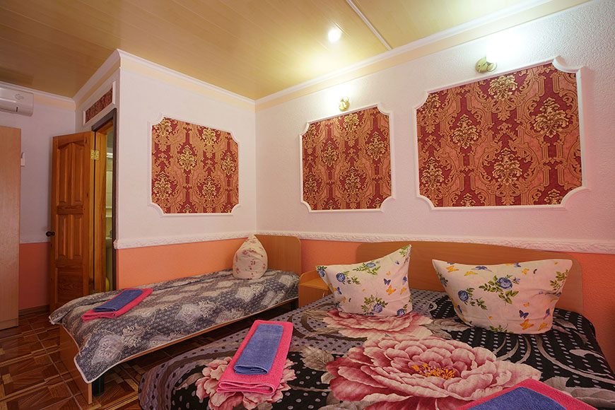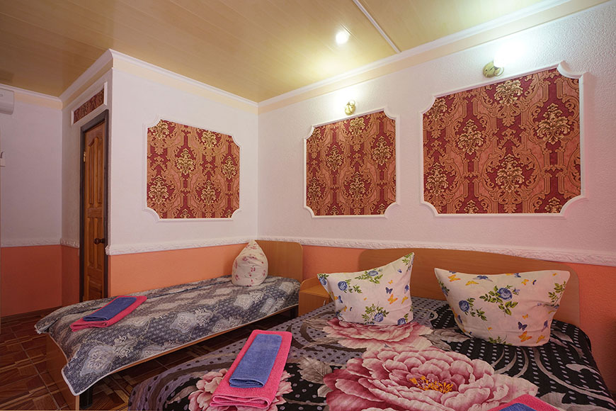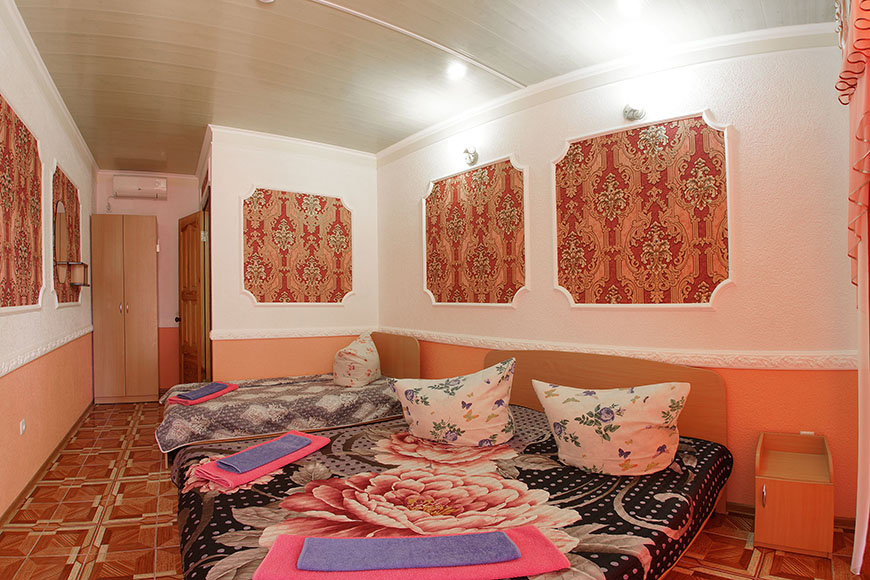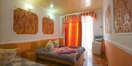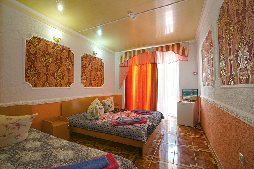 Здесь на выбор предоставляется стандартный номер и полулюкс. В каждом номере вас ждет удобная мебель, интернет, кондиционер, санузел. До моря всего несколько минут пешком, где встречают благоустроенные пляжи и морские развлечения.