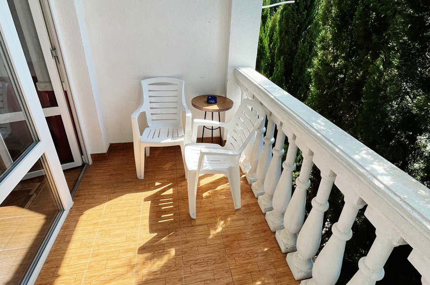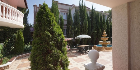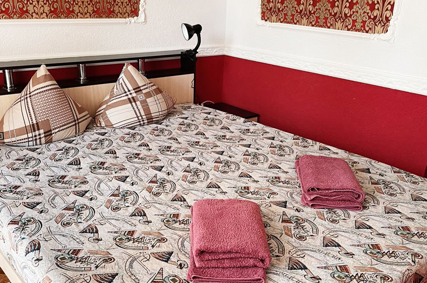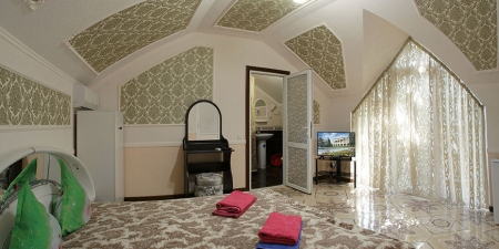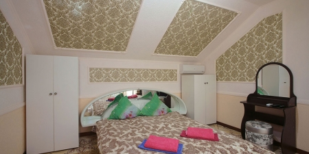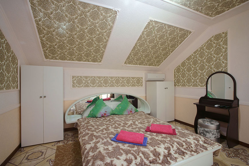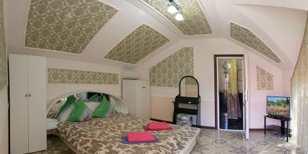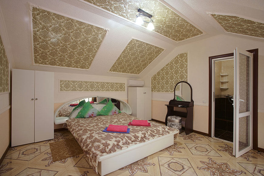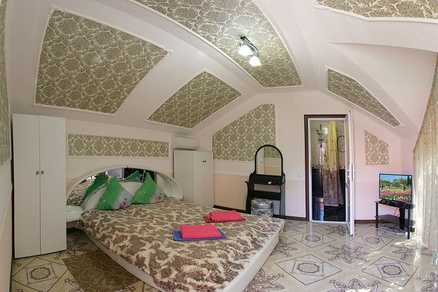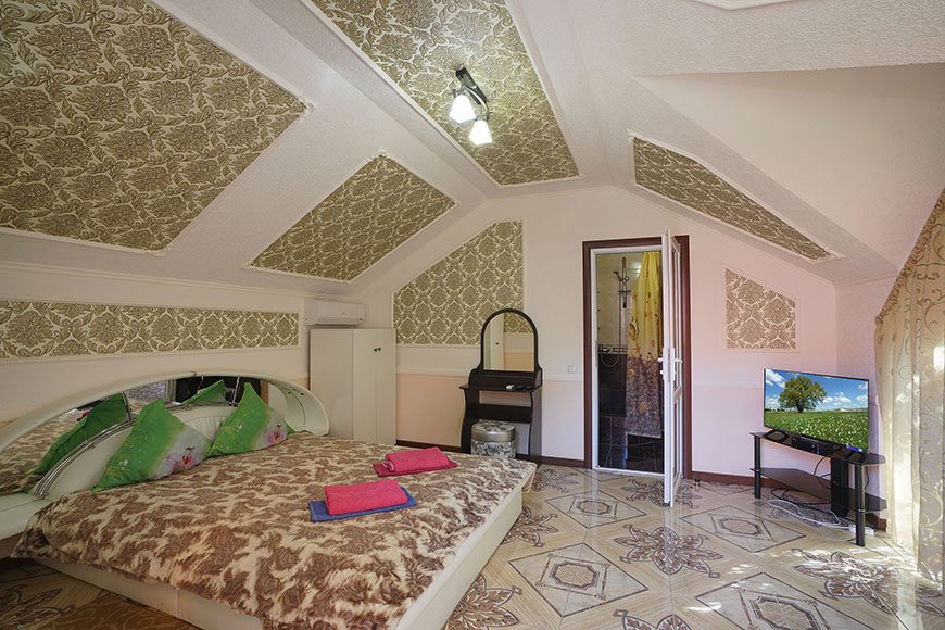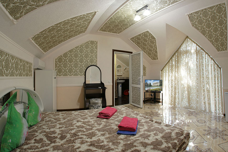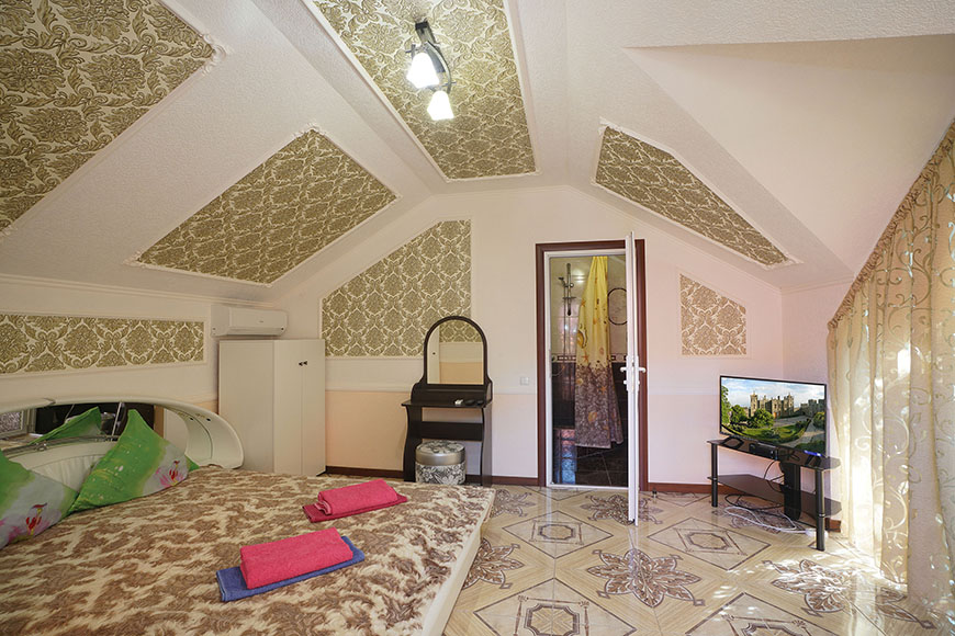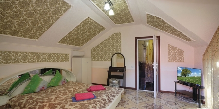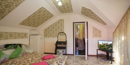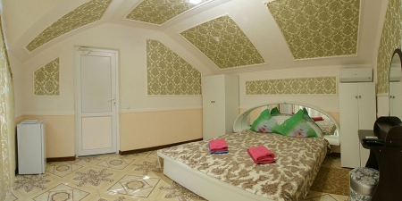 Здесь на выбор предоставляется стандартный номер и полулюкс. В каждом номере вас ждет удобная мебель, интернет, кондиционер, санузел. До моря всего несколько минут пешком, где встречают благоустроенные пляжи и морские развлечения.